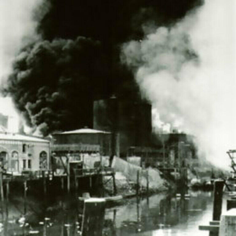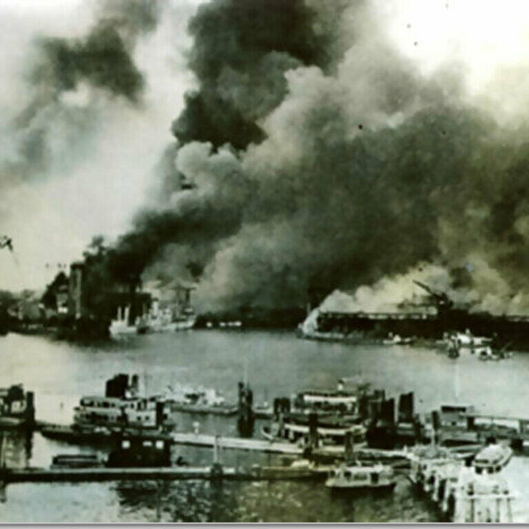 Door een onbekende Duitse fotograaf gemaakte foto’s (datering zomer 1943 – april 1945) van de geallieerde luchtaanvallen op Hamburg.