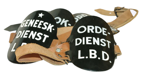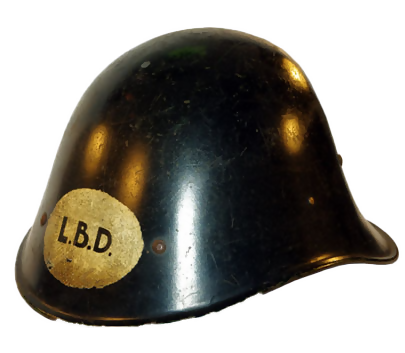 Een helm en mouwschilden, in gebruik bij de Luchtbeschermingsdienst.