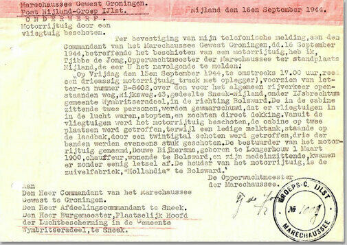 | 8-4-1945 | Veen, J.A. v.d. | Wolvega | Beschieting auto's |