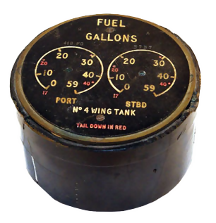 Een benzinemeter van de Mosquito. Collectie Verzetsmuseum (schenking de heer Atsma).