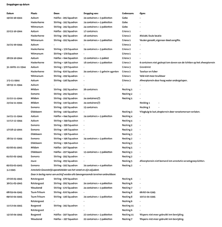 Lijst met terreinen in Friesland waarop droppingen werden uitgevoerd.