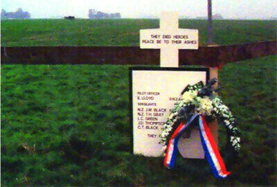 Op weg naar het Ruhrgebied werd de Wellington X9976 neergeschoten door de Duitse jachtvlieger Oberleutnant Helmut Lent. Het toestel was een van de zeven vliegtuigen die deze nacht zou worden neergeschoten door piloten van de Fliegerhorst Leeuwarden. Op de plek waar het vliegtuig neerkwam boert tegenwoordig Anne Voolstra. De verhalen over de crash kent hij uit overlevering. Pake en Beppe woonden tijdens de oorlog op de boerderij. 'Se hawwe neat fernommen fan it delstoarten, der stie in hurde wyn dy't mear rjochting Aldeboarn wie. Dêr hawwe se de klap wol heard. Altyd as ik yn dit lân bin, of der mei in trekker oer hinne ryd dan tink ik der oan. 'In het land is nog steeds het spoor van het neergekomen vliegtuig te herkennen: 'Sjoch mar, dêr is it gêrs folle ljochter en dat bliuwt ek sa.' (Anne Voolstra, interview in de Mid-Frieslander, 14 november 2007). Het wrak met de stoffelijke resten van de bemanningsleden werd opgegraven in 1952. Alle slachtoffers werden begraven op de Canadese militaire begraafplaats in Bergen op Zoom.